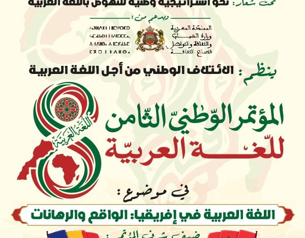 ينظم الائتلاف الوطني من أجل اللغة العربية، المؤتمر الوطني الثامن للغة العربية، في موضوع: ” اللغة العربية في إفريقيا: الواقع والرهانات ” يومي الأربعاء والخميس 29 ـ 30 أبريل 2026، بقاعة باحنيني (قرب وزارة الشباب والثقافة والتواصل، قطاع الثقافة) بالرباط بالمملكة المغربية.